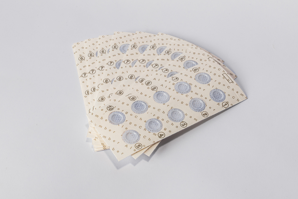 Alergochamber são câmaras com formato circular medindo 8 mm de diâmetro interno, apresentando bordas elevadas para formar uma cavidade com capacidade para 35 µL, são utilizadas única e exclusivamente para a colocação de alérgenos em suas cavidades para os testes epicutâneos (testes alergênicos de contato).