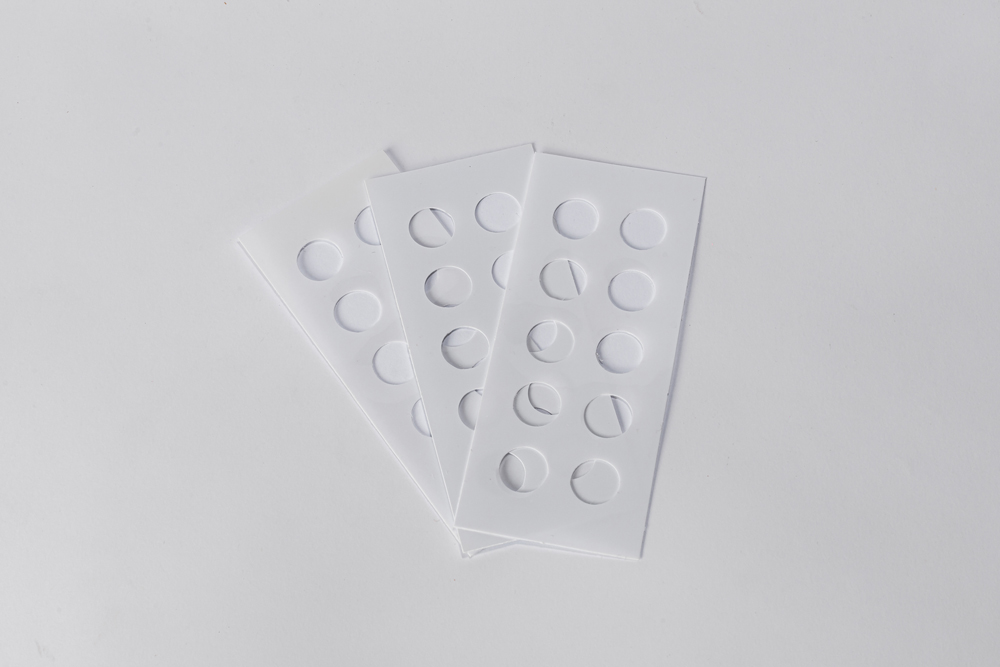 Fita adesiva com câmaras redondas para testes de contato (patch test).
